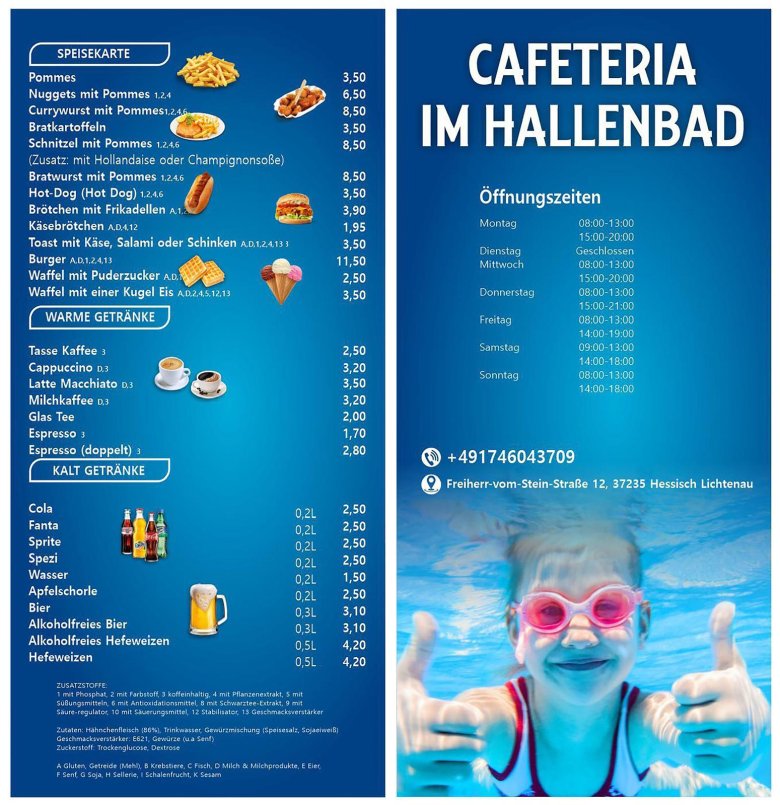 Unsere Cafeteria lädt zum Verweilen ein – ideal für eine Pause nach dem Badespaß. Leckere Snacks, kühle Getränke und süße sowie herzhafte Kleinigkeiten sorgen für gute Laune bei Groß und Klein.