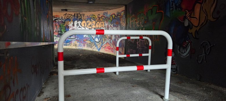 - Drängelgitter montiert: Um zu schnelles Durchfahren mit Rollern, Fahrrädern etc. zu verhindern und damit die Sicherheit zu erhöhen, wurden sogenannte Drängelgitter angebracht.