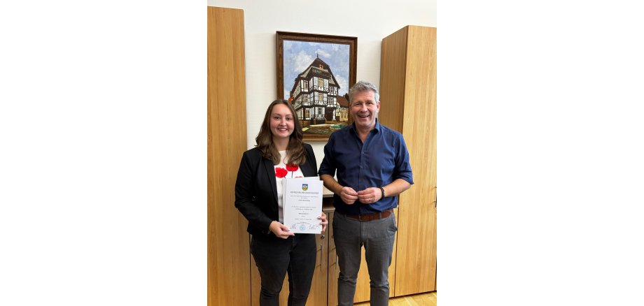 Zum 1. September wurde Juliane Eichenberg von der Stadt Hessisch Lichtenau in das Beamtenverhältnis auf Lebenszeit berufen und gleichzeitig zur Oberinspektorin befördert.