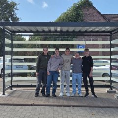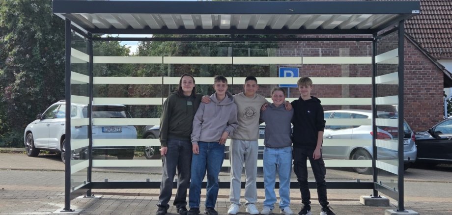 In der vergangenen Woche war es soweit: Die neue Buswartehalle wurde angeliefert, von den Mitarbeitern des Bauhofs montiert und anschließend in einer kleinen Runde eingeweiht – gemeinsam mit der stellvertretenden Schulleiterin Anke Petersen, dem projektbegleitenden Lehrer Johannes Schomberg, Bürgermeister Dirk Oetzel, Volker Witzel und Sascha Stück von der Stadtverwaltung, Ortsvorsteher Reinhard Kanstein sowie natürlich den beteiligten Schülern Hannes Neugeboren, Luis Wagner, Finn Jonas Petersen, Justus Brückmann und Ben Voigt.