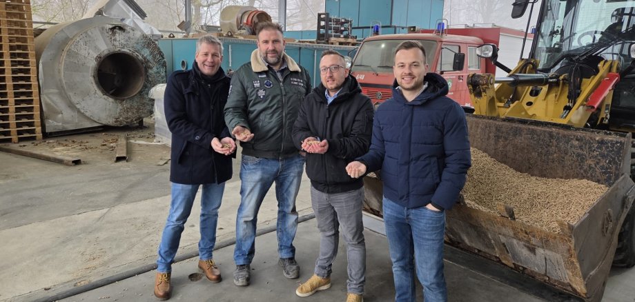 Auf den ersten Blick unscheinbar, auf den zweiten hochinteressant und überraschend: Die Unternehmenslandschaft in Hessisch Lichtenau zeigt ihre Vielfalt manchmal erst bei genauerem Hinsehen – so auch beim Besuch des Holzpelletwerks der HGS Holzhandel GmbH in Hirschhagen. Bürgermeister Dirk Oetzel und Ingo Krause als Mitarbeiter der Stadtverwaltung (Stab Steuerungsunterstützung) informierten sich vor Ort über die Pelletproduktion – passend begleitet von eisig kalten Temperaturen.